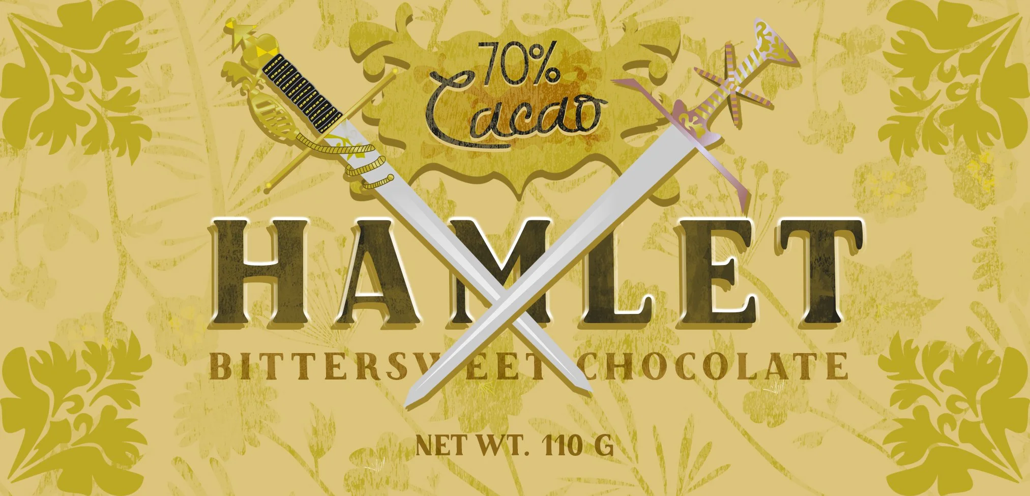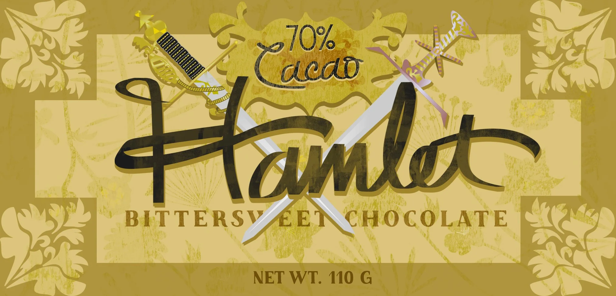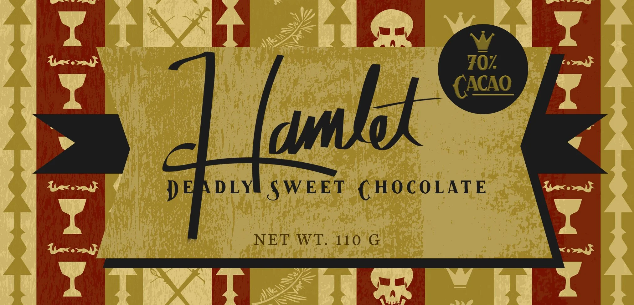 Poster and candy bar wrapper designs (three variations) for Shakespeare’s Hamlet, as part of a Mass Communications course project, completed using Adobe Photoshop and Illustrator, in the summer of 2017. Original artwork by Yours Truly.
